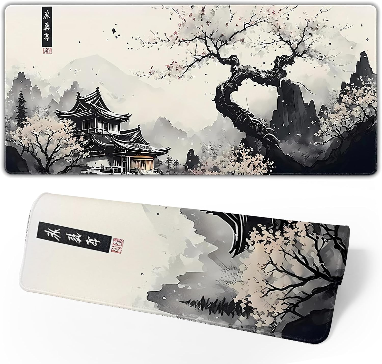 Japanese Mouse Pad, Large Japanese Desk Mat, XL Anime Gaming Keyboard Mat, Non-Slip Rubber Base, Big Extended Desk Protector for Home Office, 31.5”X11.8”